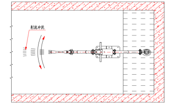 在調(diào)蓄池排空泵將調(diào)蓄池排空后,此時(shí)調(diào)蓄池底部有大量的淤積物。同時(shí)水位傳感器檢測(cè)到水位處于地位時(shí),智能噴射器啟動(dòng),其噴管在水平0~260°范圍內(nèi)旋轉(zhuǎn)(如圖2圖3所示)噴射氣水混合物,對(duì)調(diào)蓄池進(jìn)行全方位沖洗。